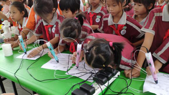 開幕式結(jié)束后,少先隊(duì)員們奔跑到各展位進(jìn)行學(xué)習(xí),極光爾沃展位人氣十足,少先隊(duì)員們對(duì)3D打印的模型很感興趣,不停的咨詢模型的打印時(shí)間和怎么打印出來(lái),極光爾沃聽到這樣的問(wèn)題非常開心,因?yàn)樯傧汝?duì)員們對(duì)3D打印十分感興趣,想從中了解更多3D打印知識(shí),我們的李工組織分發(fā)耗材,為下午3D打印筆的體驗(yàn)做好了準(zhǔn)備。