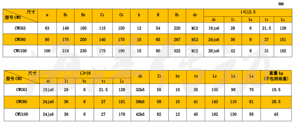 說明:海洋傳動-CW 系列圓弧齒圓柱蝸桿減速機采用單級蝸桿減速傳動,是按照中華人民共和國國家標準(JB/7935-1999)生產,全系列共包括三種型號CWU、CWS、CWO,16種中心距,12種減速機比。輸入功率范圍在0.39~189KW之間,輸出扭矩在107~13500N·m之間。適用于冶金、礦山、運輸、水泥、建筑、化工、紡織、輕工、能源、環境等行業的機械傳動。